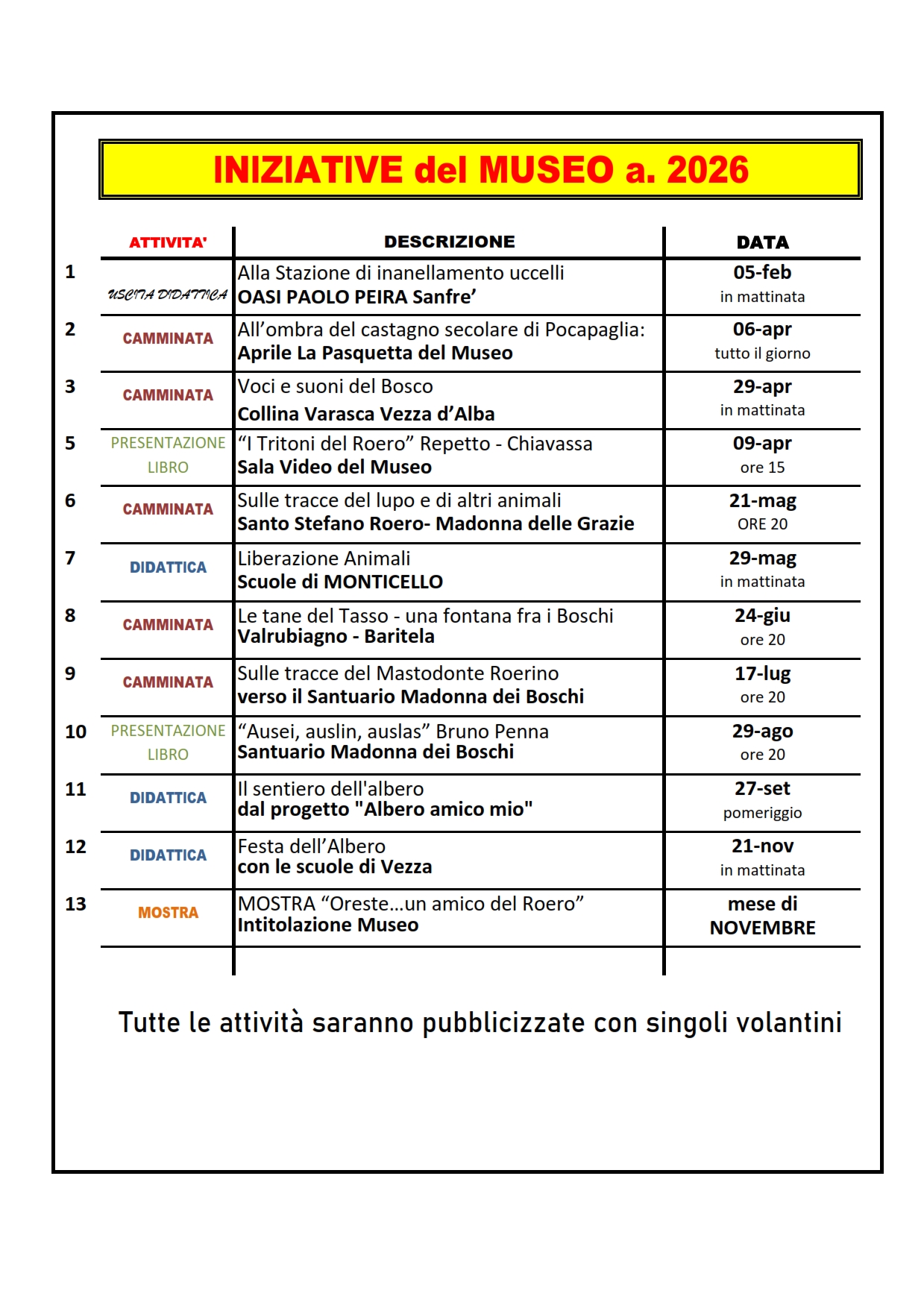 Delle iniziative del MUSEO